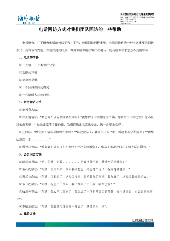 旅行社電話銷售技巧