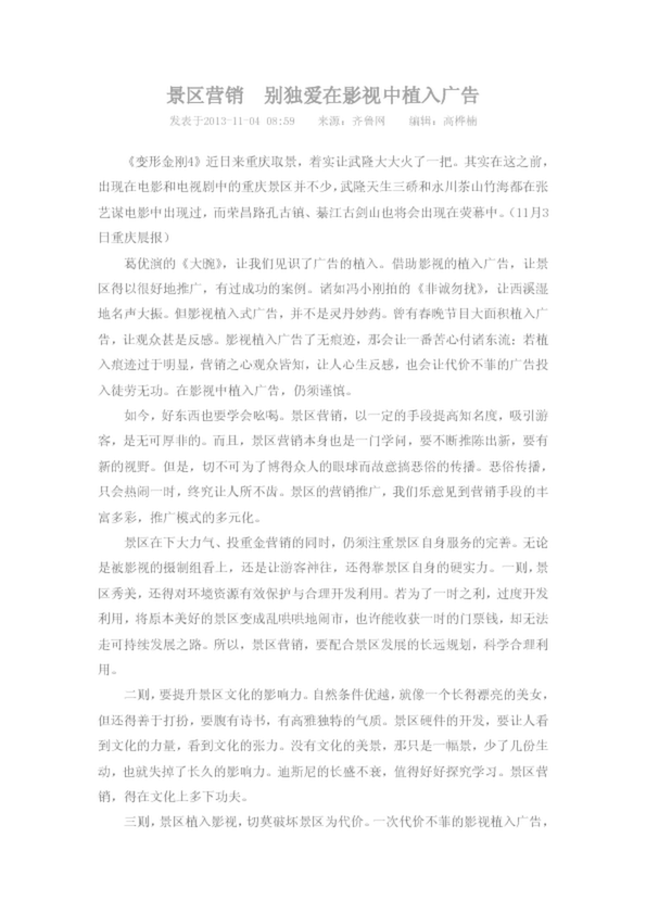 同類節(jié)目的盲目跟風,希望不要在景區(qū)的營銷中再上重演。景區(qū)營銷,請別獨愛在影視中植入廣告,還可以有更好創(chuàng)意,需要有智慧的創(chuàng)新。...