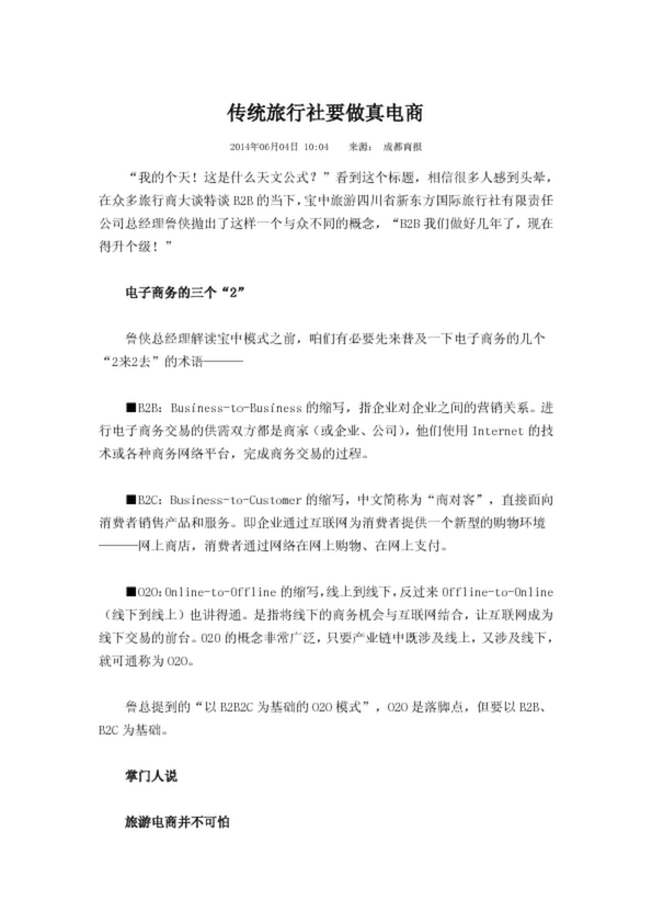 傳統(tǒng)旅行社把信息技術巧妙地運用到自己的生產(chǎn)經(jīng)濟各個環(huán)節(jié),運用好了就是優(yōu)秀的旅游電子商務。 目前,傳統(tǒng)旅游受到前所未有的沖擊,很多傳統(tǒng)旅游企業(yè)也開始嘗試向旅游電子商務轉型,但這些企業(yè)對旅游電子商務了解甚少,再加...