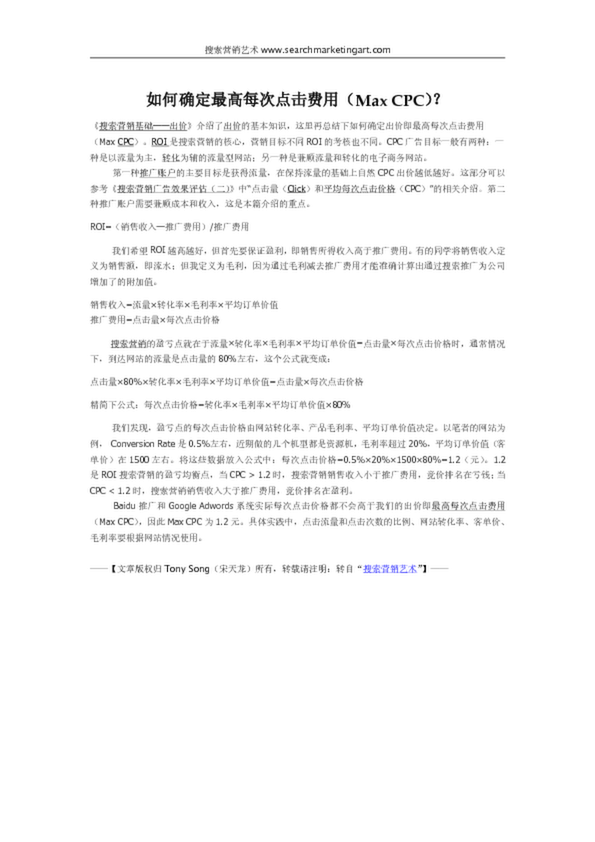 搜索引擎優(yōu)化seo:最低CPC出價(jià)策略就是在搜索營(yíng)銷(xiāo)中使用最低展現(xiàn)價(jià)格參與競(jìng)價(jià)。每次轉(zhuǎn)化費(fèi)用的最高出價(jià)是根據(jù)當(dāng)前 CPC 和轉(zhuǎn)化率出來(lái)的,即每次最高轉(zhuǎn)化費(fèi)用=每次點(diǎn)擊費(fèi)用/ 轉(zhuǎn)化率。