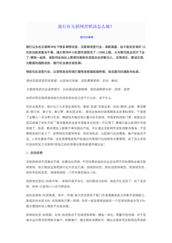 網(wǎng)絡(luò)營銷,說白了,就是在互聯(lián)網(wǎng)上賣東西,對于旅行社來說,開展網(wǎng)絡(luò)營銷主要是在...做好網(wǎng)絡(luò)廣告的要點(diǎn),在于選擇到哪個網(wǎng)站去做網(wǎng)絡(luò)廣告。 視頻營銷:視頻營銷即用...