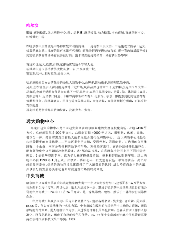 哈爾濱各大商場(chǎng)資料(47.00KB)