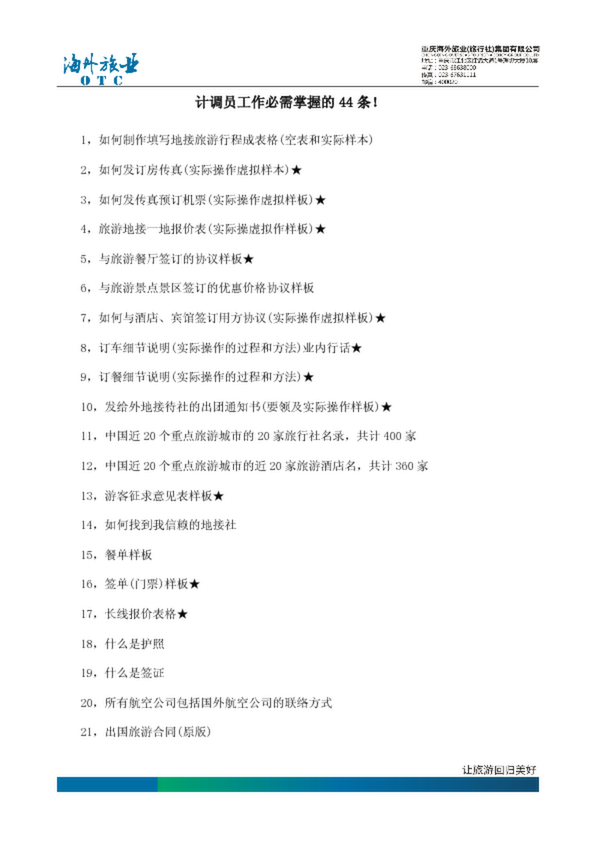 計調(diào)的工作內(nèi)容,1,如何制作填寫地接旅游行程成表格(空表和實際樣本) 2,如何發(fā)訂房傳真(實際操作虛擬樣本)★ 3,如何發(fā)傳真預(yù)訂機票(實際操作虛擬...