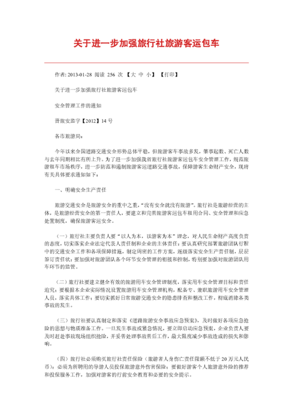 關(guān)于進(jìn)一步加強(qiáng)旅行社旅游客運(yùn)包車