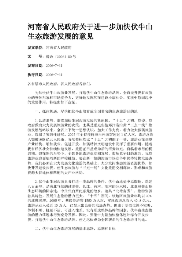 河南省人民政府關(guān)于進(jìn)一步加快伏牛山生態(tài)旅游發(fā)展的意見