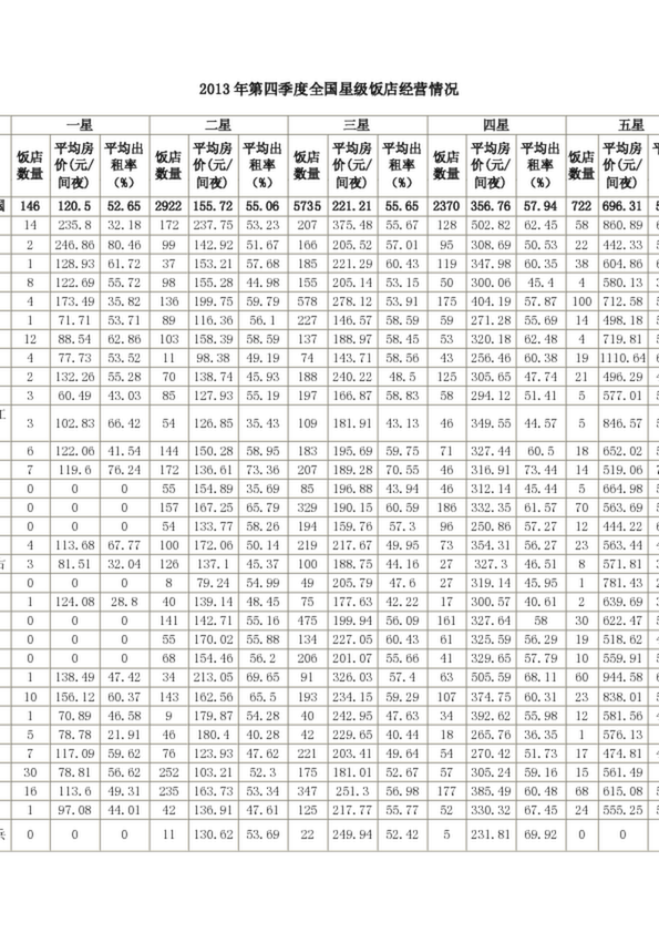 2013年第四季度全國星級飯店經(jīng)營情況