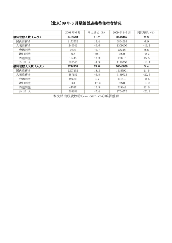 [北京]09年6月星級飯店接待住宿者情況