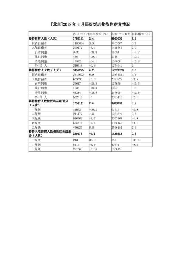 [北京]2012年6月星級(jí)飯店接待住宿者情況