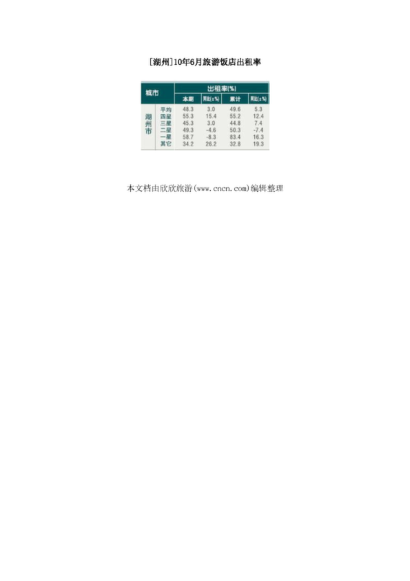 [湖州]10年6月旅游飯店出租率