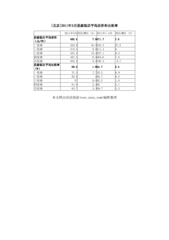 [北京]2011年5月星級(jí)飯店平均房?jī)r(jià)和出租率