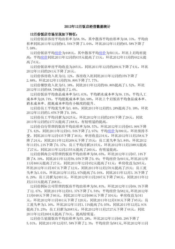 2012年12月飯店經(jīng)營數(shù)據(jù)統(tǒng)計