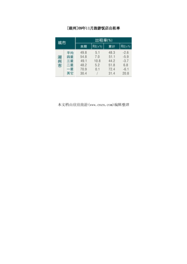 [湖州]2010年10月星級飯店平均房價和出租率