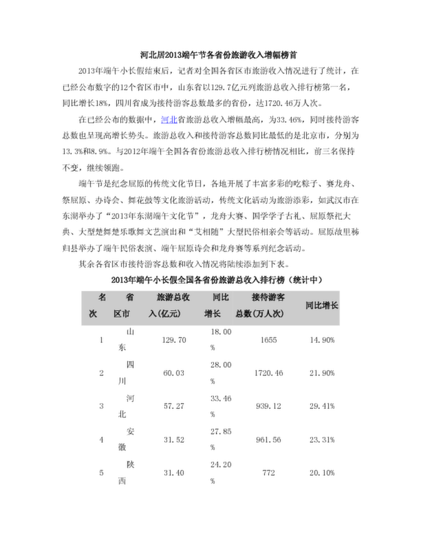 河北居2013端午節(jié)各省份旅游收入增幅榜首(44.00KB)