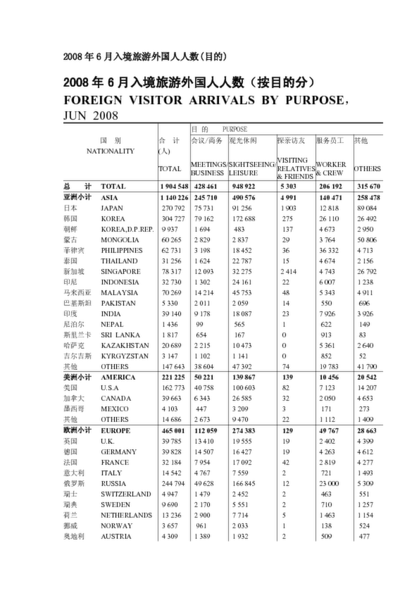 2008年6月入境旅游外國人人數(shù)(目的)
