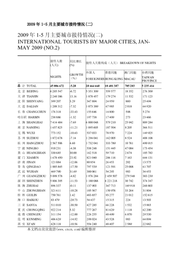 2009年1-5月主要城市接待情況(二)