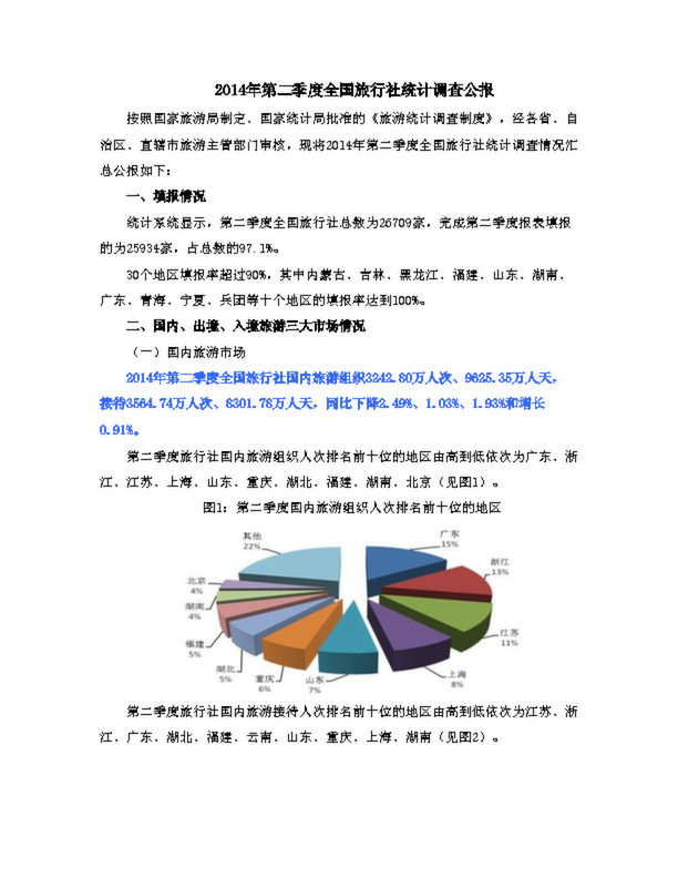 2014年第二季度全國旅行社統(tǒng)計(jì)調(diào)查公報