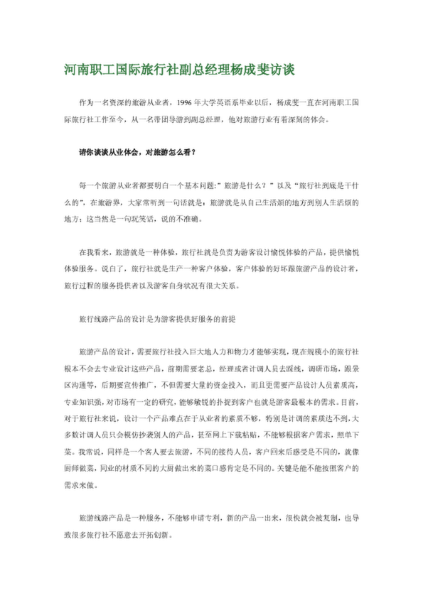 河南職工國際旅行社副總經(jīng)理楊成斐訪談