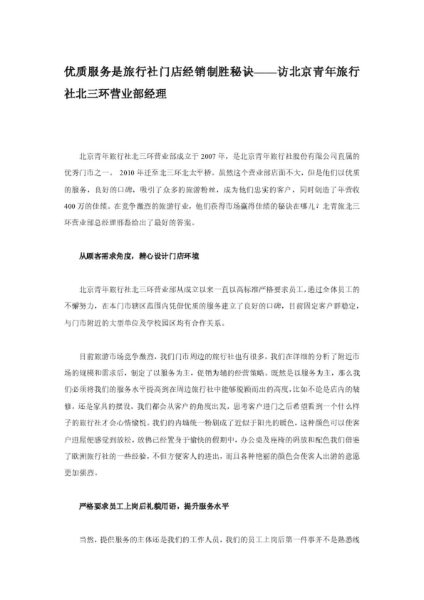 優(yōu)質(zhì)服務(wù)是旅行社門(mén)店經(jīng)銷(xiāo)制勝秘訣——訪北京青年旅行社北三環(huán)營(yíng)業(yè)部經(jīng)理