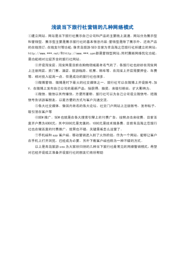 淺談當下旅行社營銷的幾種網(wǎng)絡模式