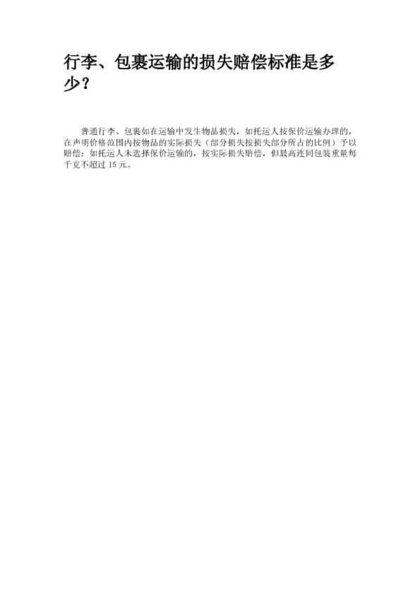 行李、包裹運輸?shù)膿p失賠償標(biāo)準(zhǔn)是多少?