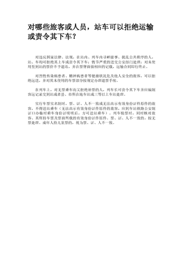 對哪些旅客或人員,站車可以拒絕運輸或責令其下車?
