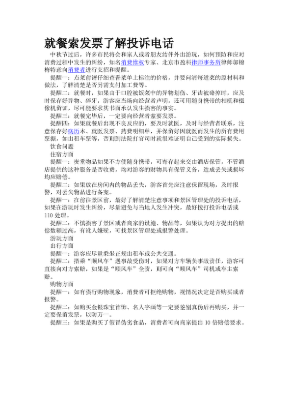 就餐索發(fā)票了解投訴電話