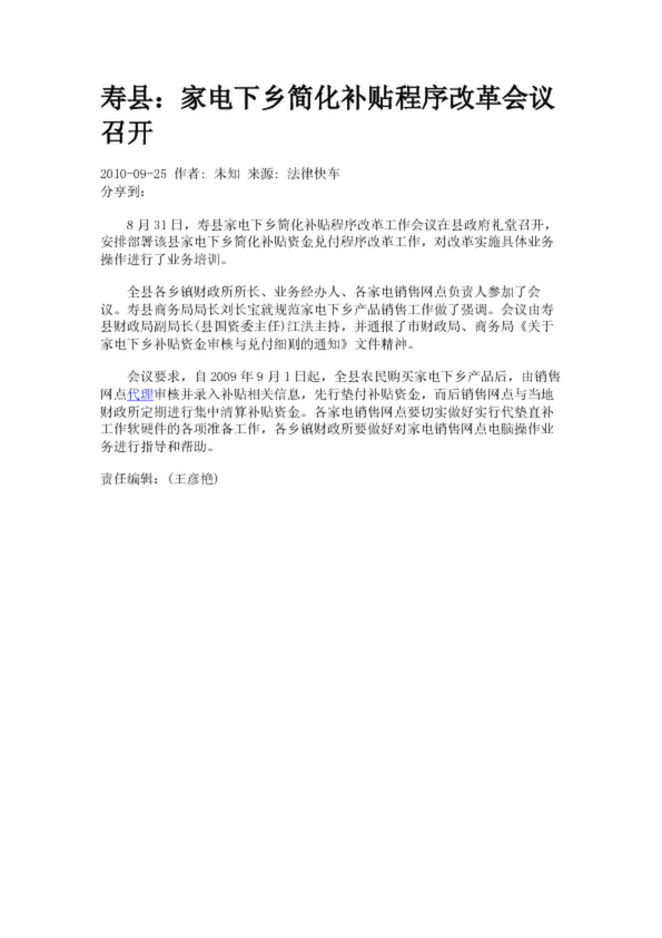 壽縣:家電下鄉(xiāng)簡化補貼程序改革會議召開