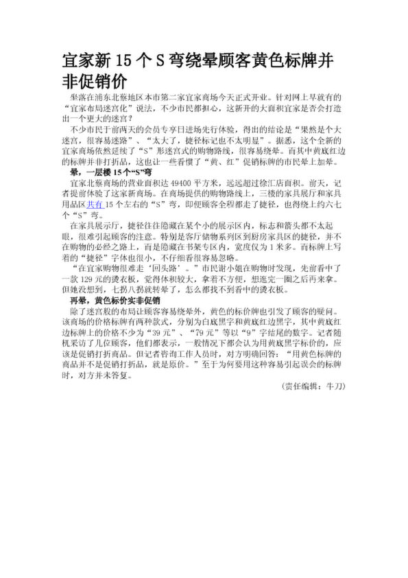 宜家新15個(gè)S彎繞暈顧客黃色標(biāo)牌并非促銷價(jià)