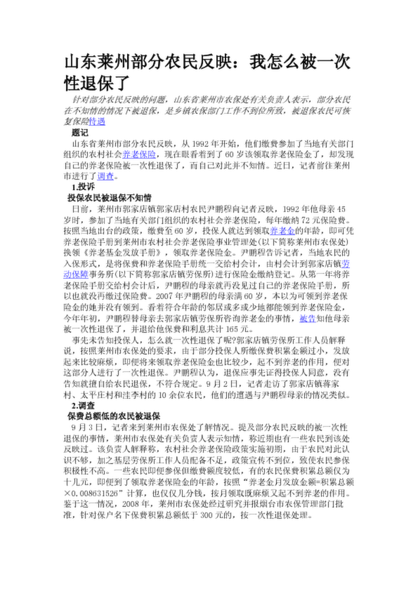 山東萊州部分農(nóng)民反映:我怎么被一次性退保了