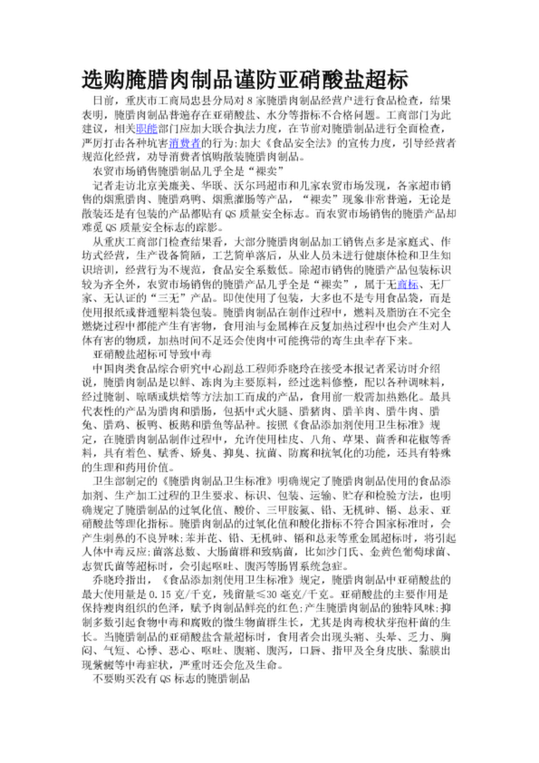 選購(gòu)腌臘肉制品謹(jǐn)防亞硝酸鹽超標(biāo)