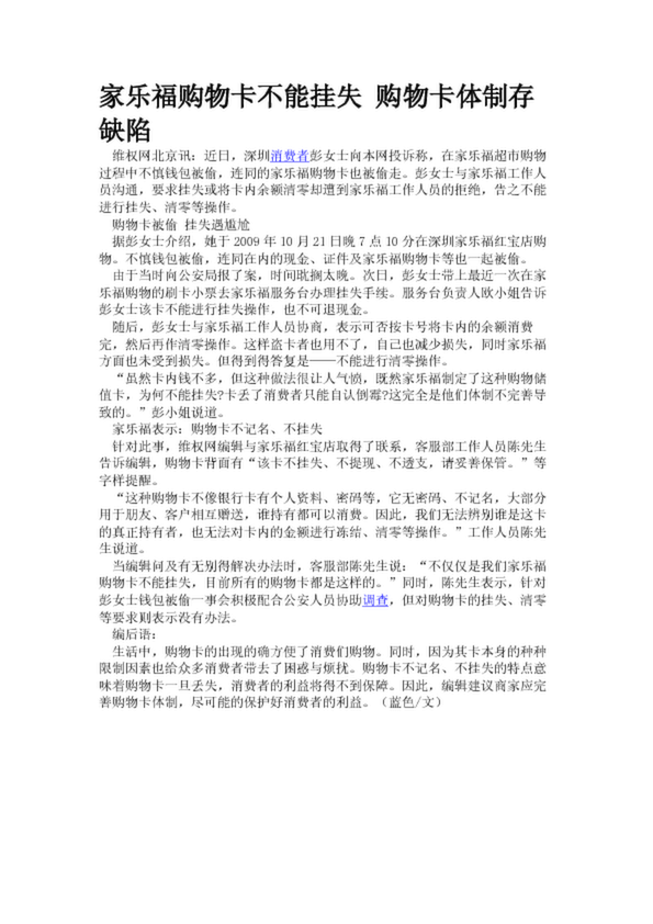 家樂(lè)福購(gòu)物卡不能掛失 購(gòu)物卡體制存缺陷
