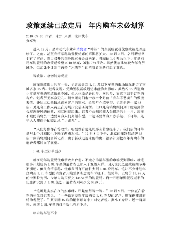政策延續(xù)已成定局 年內(nèi)購(gòu)車未必劃算
