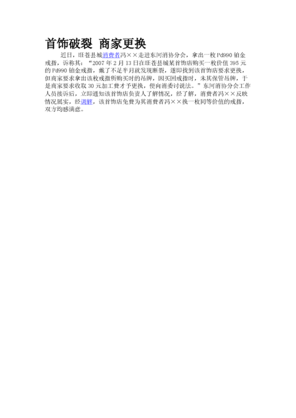 首飾破裂 商家更換